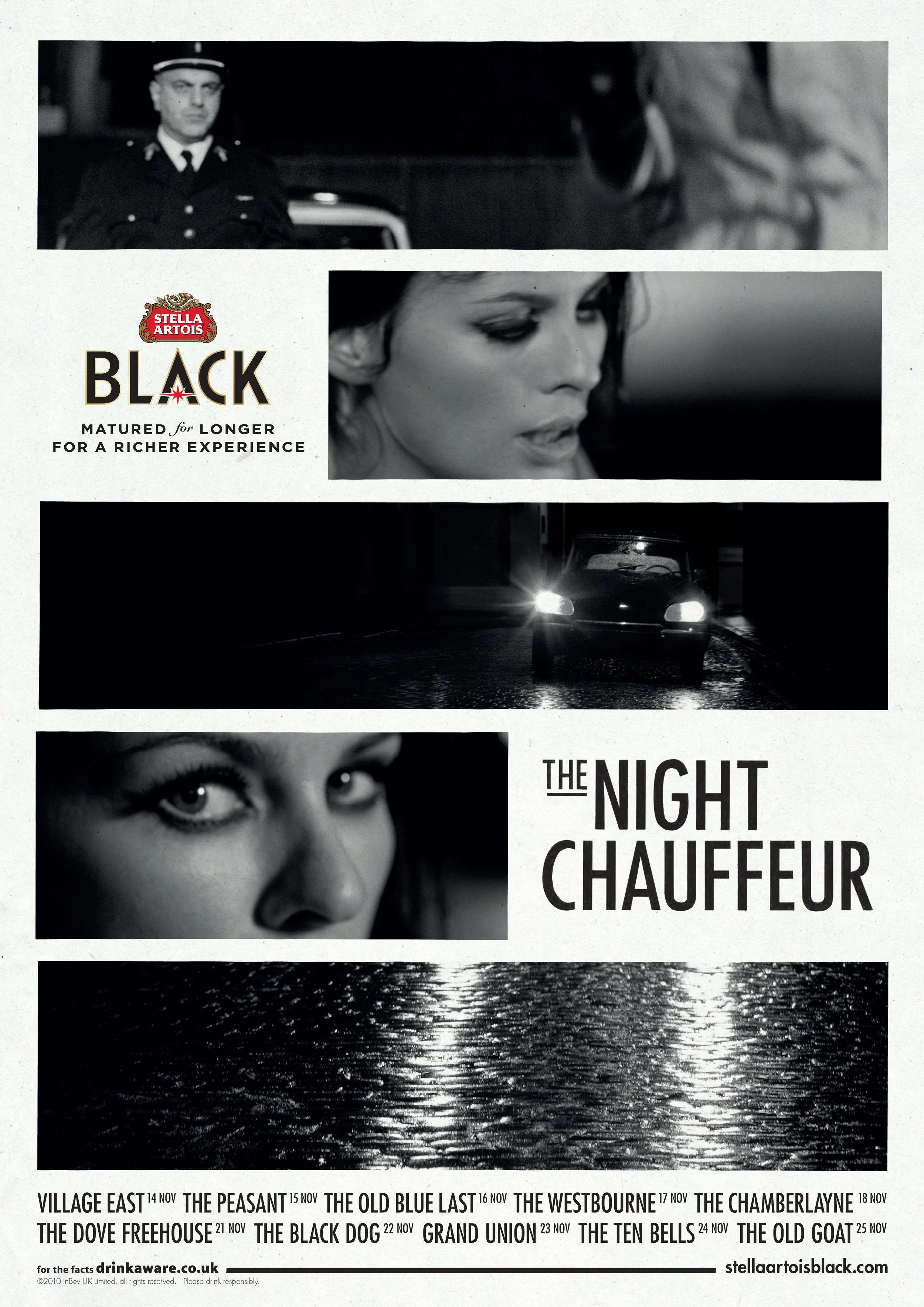 To launch the new Stella Artois Black, we were asked to not use traditional channels (with the premise of alcohol ads being banned). The new beer was matured longer for a richer experience, so we expanded the Stella Artois world with the help of Punchdrunk, we brought 1960s style and nouvelle cinema to life for people to experience in their local pub.